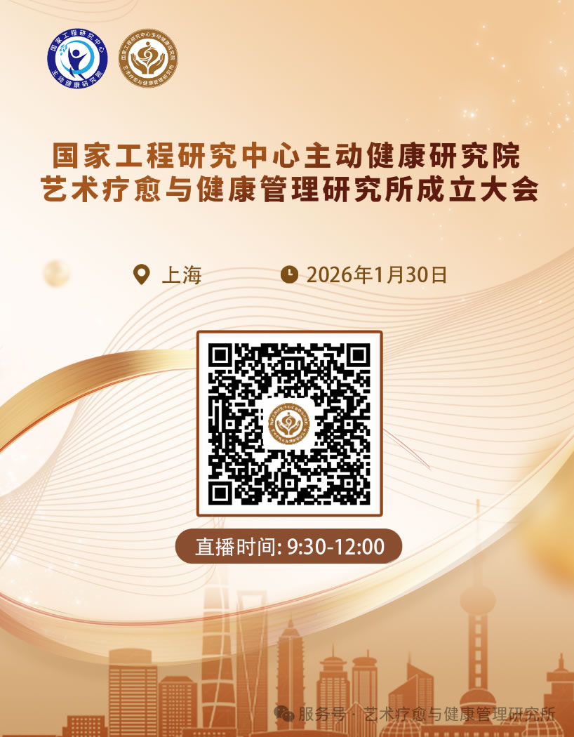 2026年1月30日9:30,国家工程研究中心主动健康研究院艺术疗愈与健康管理研究所将举办成立大会,并进行线上直播,欢迎大家届时观看。